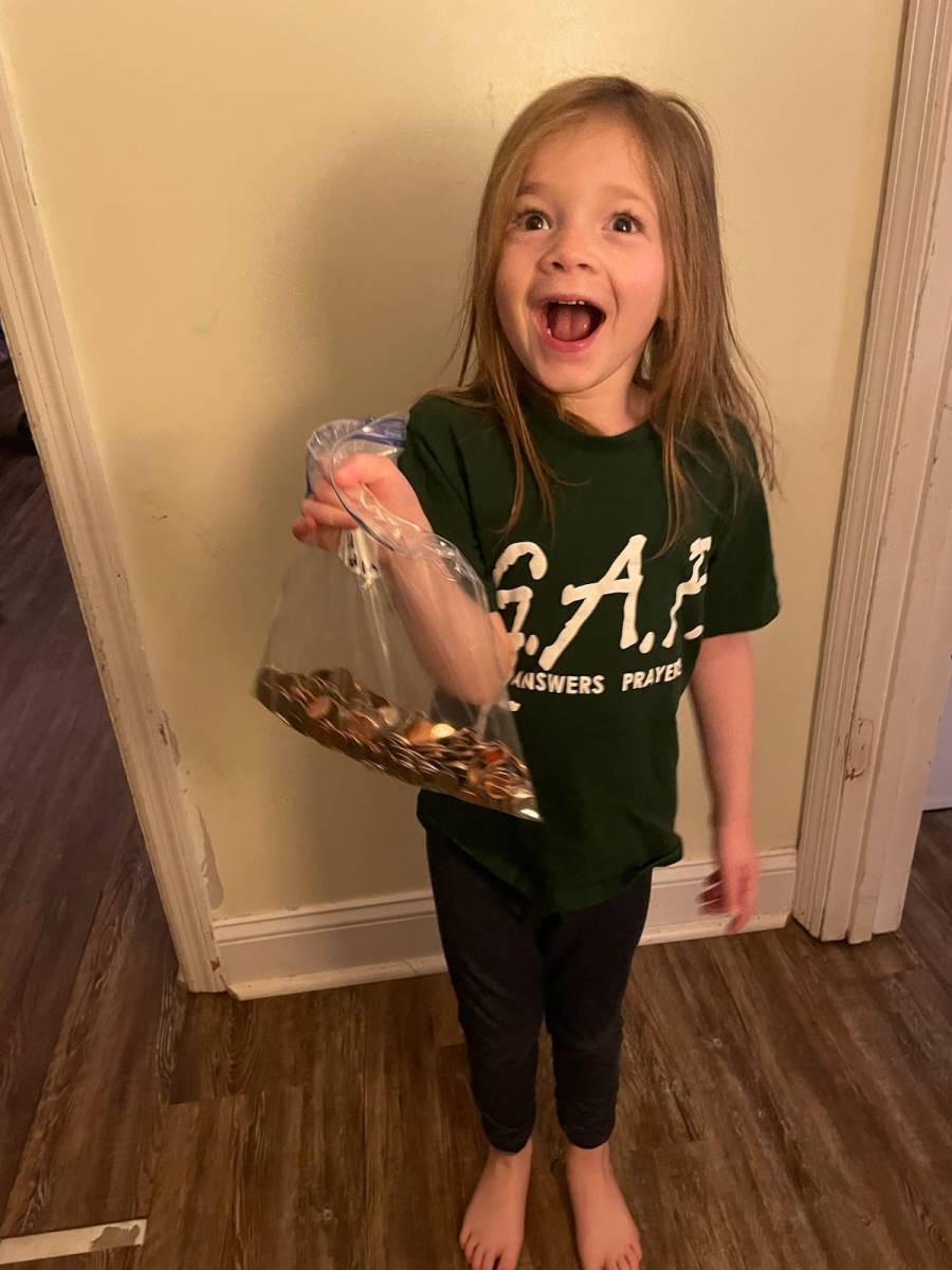 While there, a 5-year-old girl named Kori came up to Nard and gave him a small plastic bag full of coins. It was so heavy that she could barely hold it! He asked her where she’d gotten the coins.