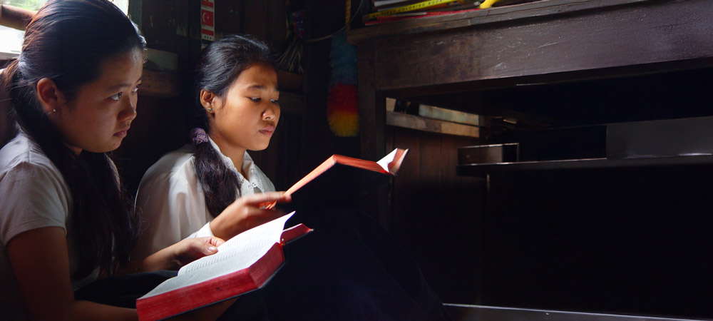 asia girls reading Scripture